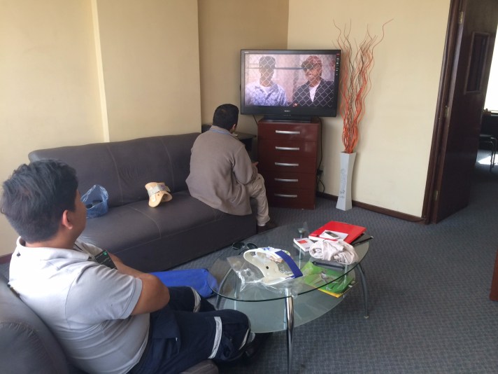 Ici, pas d’aide au portage offerte par les pompiers ou la police, mais c’est les familles qui prêtent mains fortes. Après l’effort, nous nous retrouvons souvent au chevet du lit du patient avec un verre de Coca à la main en guise de remerciement. Un bel exemple de l’hospitalité bolivienne.