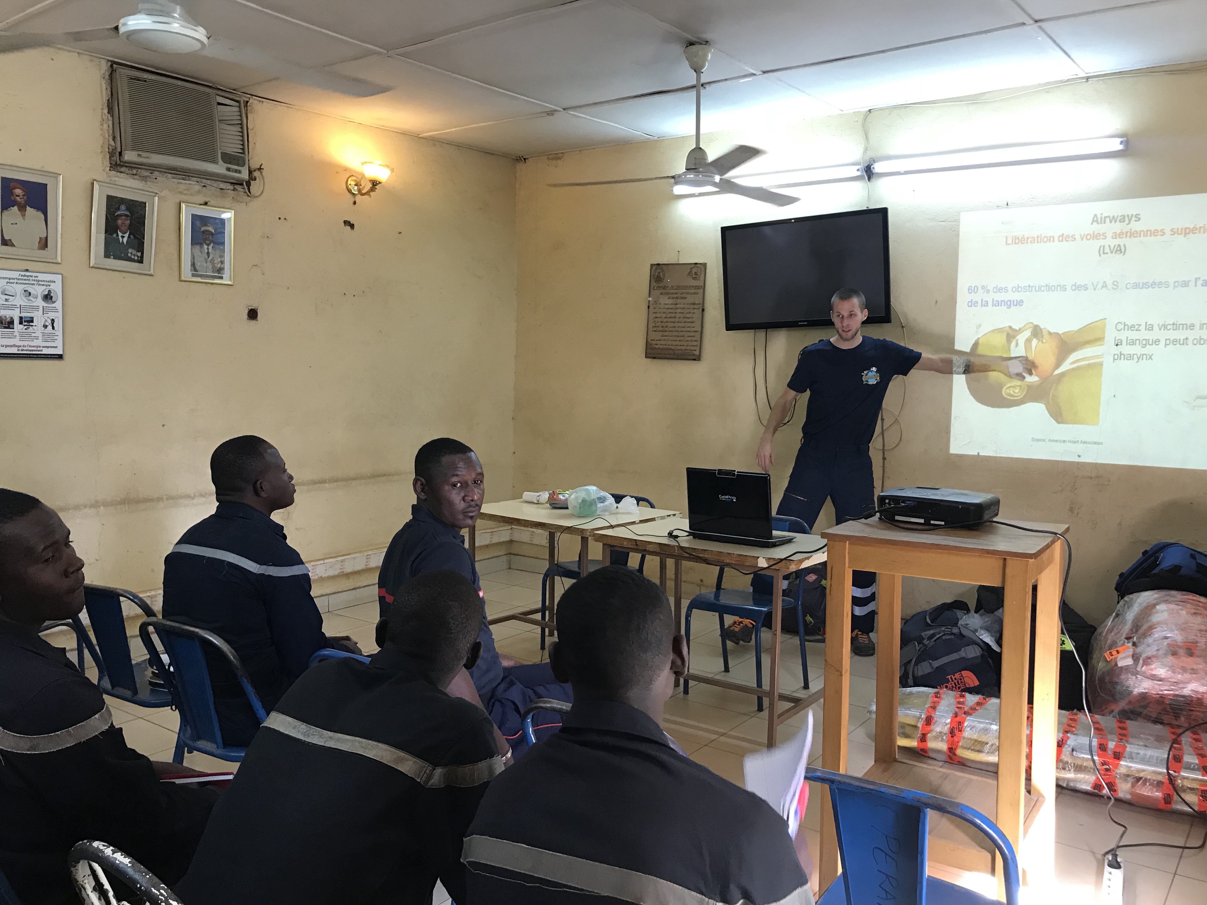 Véronique et Mathias profitent de cette première journée pour être en stage en ambulance avec une équipe de la BNSP. Ils sont minimum 3 par ambulance et fréquemment 4 quand il y a des sapeurs-pompiers tout fraîchement débarqués.