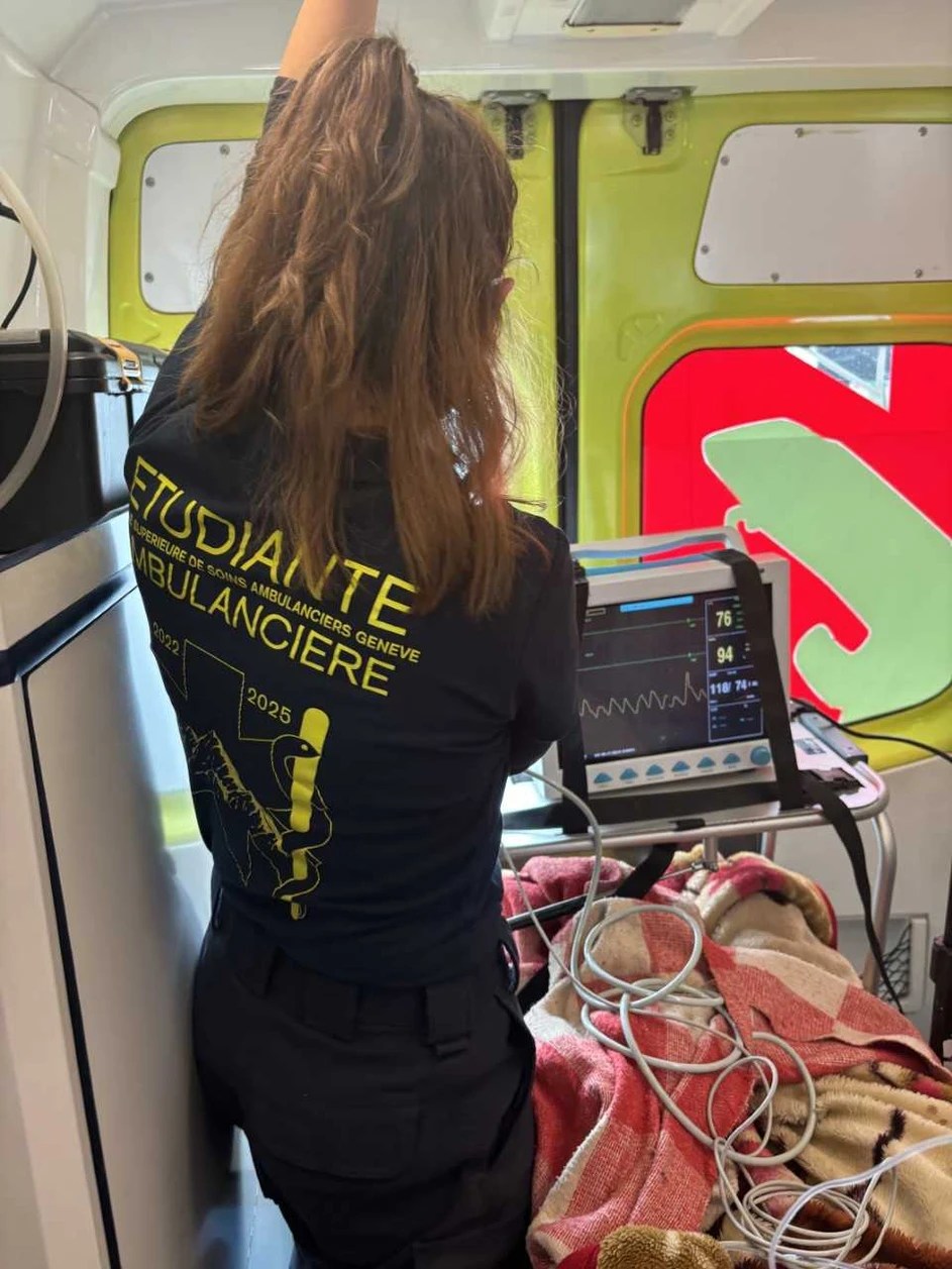 Concept de sécurité personnelle en intervention : nous portons des gants et un FFP2 par principe, le reste de nos notions de sécurité sont inexistantes: pas de boîtes à aiguilles, désinfections approximatives, ceintures de sécurité inexistantes (en même temps, nous sommes debout avec le patient derrière)…