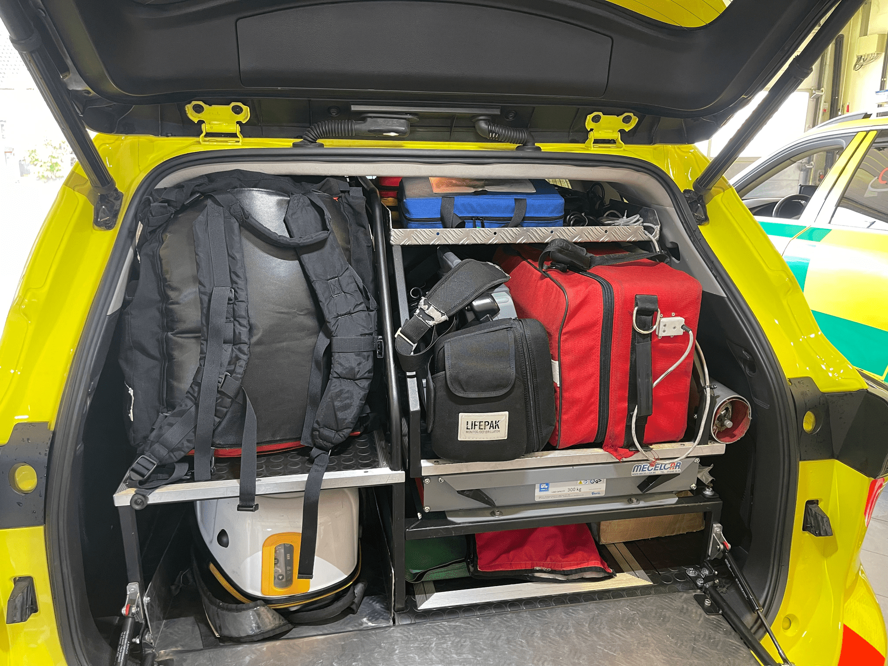 Première mission de la journée, check du véhicule. Je découvre la quantité impressionnante de matériel capable de rentrer dans ce véhicule. Afin de faciliter la vérification du véhicule, les sacs sont scellés avec la date et les initiales de l’infirmier qui l’a vérifié. Je trouve ça assez astucieux, surtout qu’ils ont, entre autres: du matériel pour la gestion d’évènements majeurs, une valise pour des actes invasifs (tels que les drains thoraciques ou la coniotomie), un kit accouchement, des réserves de perfusions supplémentaires (et des traitements tels que le Cyanokit), ou le kit pour traiter les brûlures (matériel utilisé rarement, heureusement, mais nécessaire).